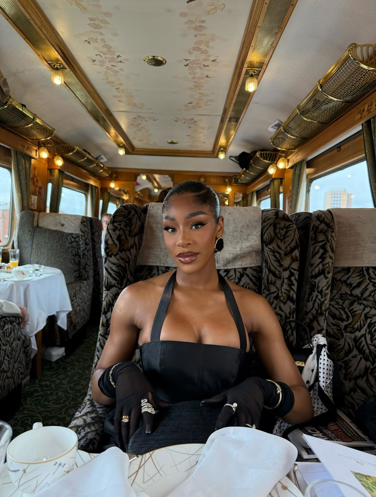 The look began with a 13x6 HD Frontal and a Virgin Cambodian bundle, expertly crafted by Ggalore into a flawless frontal bun. It was smooth, symmetrical, and finished to perfection the kind of style that quietly commands the room without a single word.